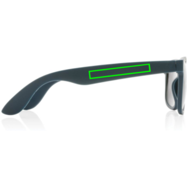 Napszemüveg RCS újrahasznosított PP kerettel. A keret újrahasznosított anyag tartalma 100%. Teljes újrahasznosított anyag tartalom: 66% a termék összsúlya alapján. A RCS-tanúsítvány biztosítja az újrahasznosított anyagok ellátási láncát. A lencsék füstös akrilból készültek illetve az EN ISO 12312-1, UV 400 és CAT 3 szabványoknak megfelelnek. FSC® kraft tokban.