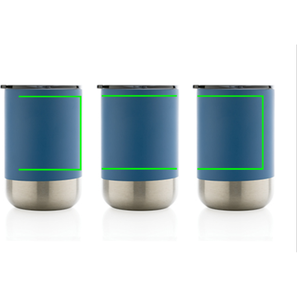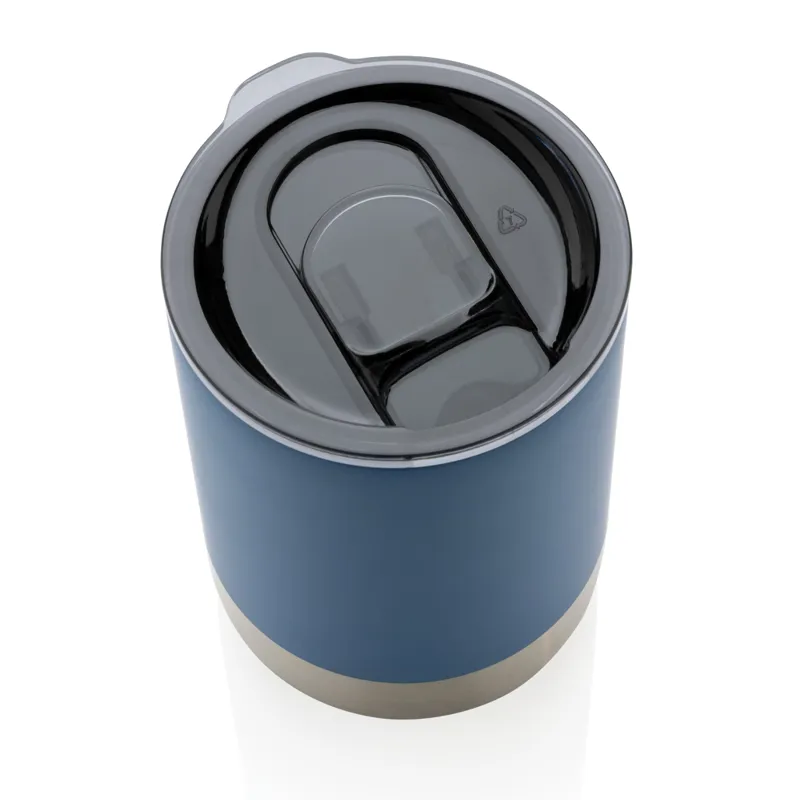Gyönyörű pohár újrahasznosított rozsdamentes acél kialakítással és vákuumszigeteléssel ezáltal az italokat akár 3 órán át melegen, vagy akár 6 órán át hidegen tartja. A trendi kivitelezés rozsdamentes acél aljjal igazán szemet gyönyörködtetővé teszi. Csúsztatható mechanizmusú ivónyílással ellátott fedő. RCS (Recycled Claim Standard) újrahasznosított anyagokból készült. Az RCS-tanúsítvány biztosítja az újrahasznosított anyagok ellátási láncát. Teljes újrahasznosított tartalom: 76% a termék teljes súlya alapján. BPA-mentes. Űrtartalma: 360 ml. FSC® kraft csomagolásban.