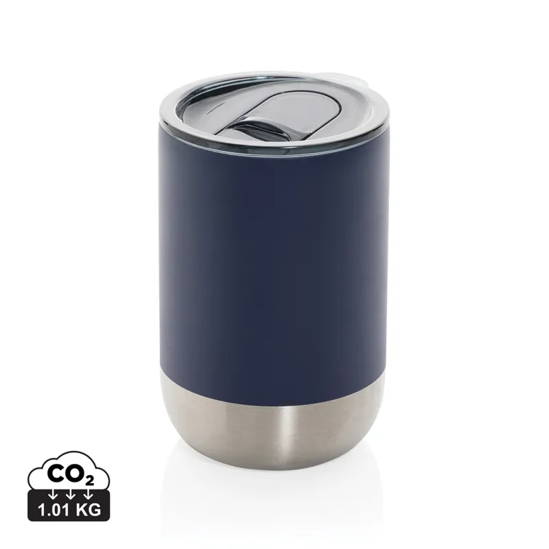 Gyönyörű pohár újrahasznosított rozsdamentes acél kialakítással és vákuumszigeteléssel ezáltal az italokat akár 3 órán át melegen, vagy akár 6 órán át hidegen tartja. A trendi kivitelezés rozsdamentes acél aljjal igazán szemet gyönyörködtetővé teszi. Csúsztatható mechanizmusú ivónyílással ellátott fedő. RCS (Recycled Claim Standard) újrahasznosított anyagokból készült. Az RCS-tanúsítvány biztosítja az újrahasznosított anyagok ellátási láncát. Teljes újrahasznosított tartalom: 76% a termék teljes súlya alapján. BPA-mentes. Űrtartalma: 360 ml. FSC® kraft csomagolásban.