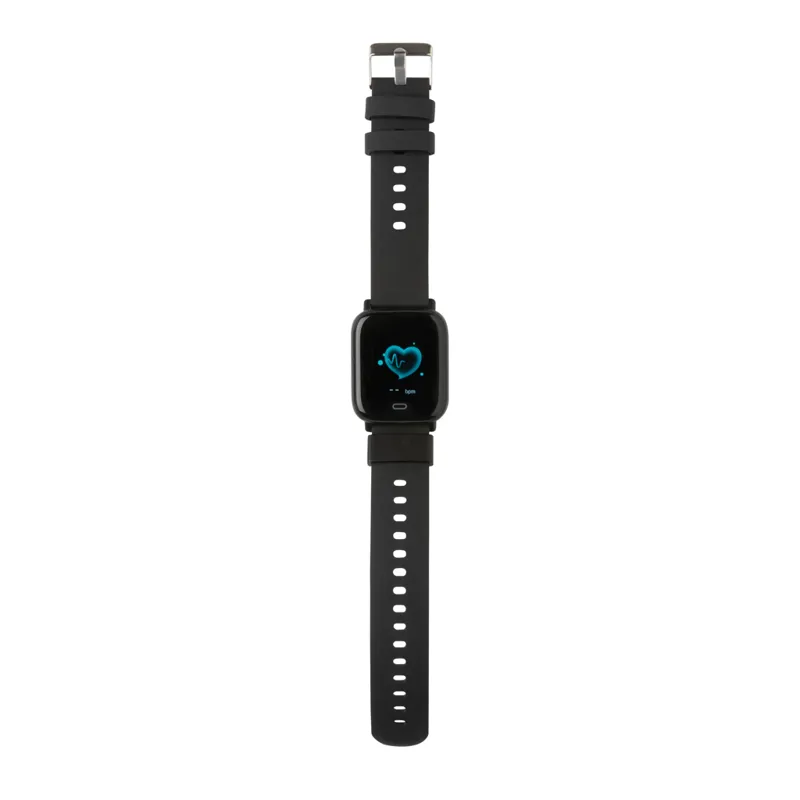 Modern életmód óra 1,3”-es érintőképernyővel, hogy egész nap nyomon követhesse tevékenységeit RCS (Recycled Claim Standard) újrahasznosított TPU karszalag, ABS keret. Teljes újrahasznosított anyag tartalom: 31% a termék összsúlya alapján. Az RCS-tanúsítvány biztosítja az újrahasznosított anyagok ellátási láncát. Jellemzők: lépésszámláló, kalória, távolság, multisport nyomonkövető ébresztőóra, pulzusmérés, vérnyomásmérés, alvásfigyelő, naptárfrissítések, hívásindítás és -fogadás, értesítések: SMS, Facebook, Skype, WhatsApp, Twitter stb. Android 4.4, IOS 8.0 és újabb verziókkal kompatibilis. IPX 67 víz- és porálló. 5.0 vezeték nélküli kapcsolat. Készenléti idő 15 nap és működési idő akár 5 nap. Chipes töltővel az óra töltéséhez. FSC® mix kraft csomagolásban. A termék és összetevői 100% PVC-mentesek.