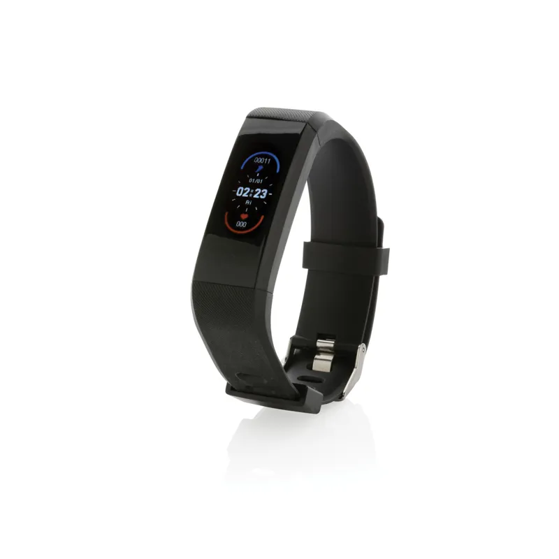 Vízálló (IPX5) aktivitásmérő amely kényelmes újrahasznosított TPU csuklópánttal rendelkezik, nappal és éjszaka is viselhető. Könnyen használható, 0,96 hüvelykes érintőképernyős, színes OLED képernyővel. RCS (Recycled Claim Standard) újrahasznosított TPE karpánt, ABS keret. Teljes újrahasznosított anyag tartalom: 35% a termék összsúlya alapján. Az RCS-tanúsítvány biztosítja az újrahasznosított anyagok ellátási láncát. Ingyenes alkalmazás 6 nyelven, hogy betekintést nyerjen az elért eredményeibe (iOS 8.1 és Android 4.4 vagy újabb verziókhoz). 5.0-s vezeték nélküli kapcsolat. A következő funkciókat tartalmazza: alváskövetés, lépésszámlálás, távolság, kalóriaszámláló, pulzusmérő, vérnyomás, véroxigén, multisport mód (11) és kameravezérlés. Ez a divatos aktivitásmérő egészségesebb életmódot kínál. Készenléti idő 15 nap és működési idő akár 7 nap. FSC® mix kraft csomagolásban. A termék és összetevői 100% PVC-mentesek.