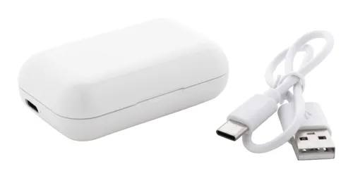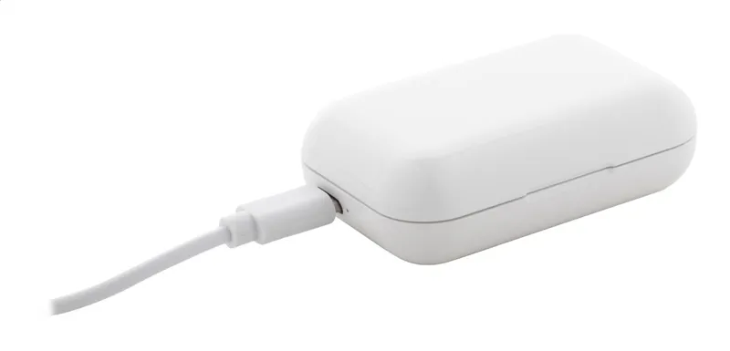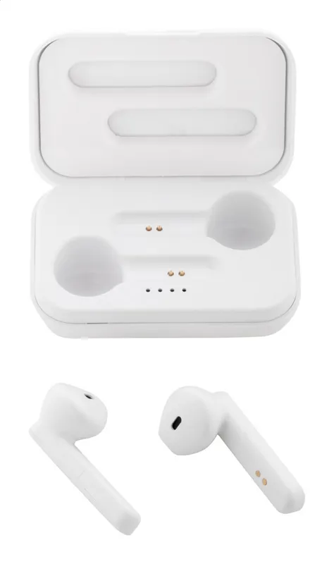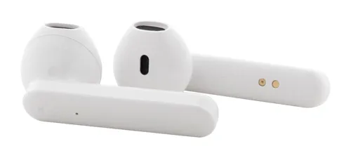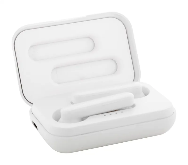 Újrahasznosított ABS műanyagból készült, valódi vezeték nélküli (TWS) fülhallgató kihangosító funkcióval, műanyag töltő tokban, 400 mAh akkumulátorral. USB töltőkábellel szállítjuk.