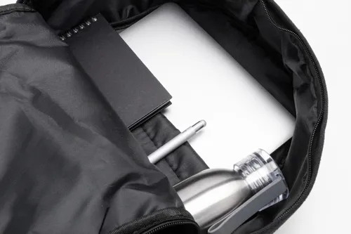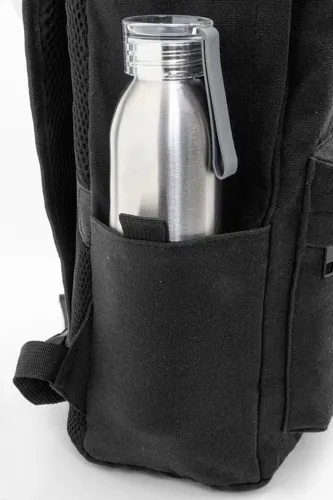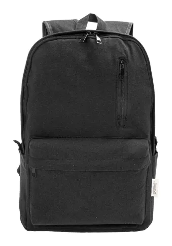 Újrahasznosított vászon hátizsák cipzáras fő rekesszel, párnázott laptop rekesszel (15"), 2 cipzáras elülső zsebbel, oldalsó zsebekkel, vállpánttal, párnázott hátrésszel és vállpántokkal. 70% újrahasznosított pamut és 30% RPET poliészter. Megkülönböztető újrahasznosított pamut címkével.