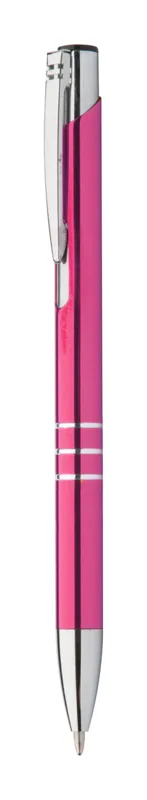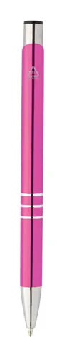 Újrahasznosított alumínium golyóstoll, fémes felülettel és kék tollbetéttel.