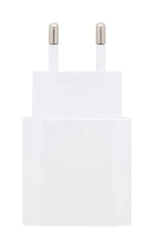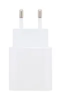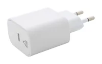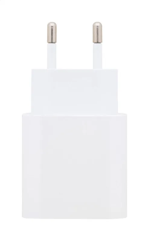 Újrahasznosított ABS gyorstöltő USB fali töltő 1 USB-C porttal. Támogatja a gyorstöltési technológiát (PD20W / QC3.0). 2 pólusú európai csatlakozóval.