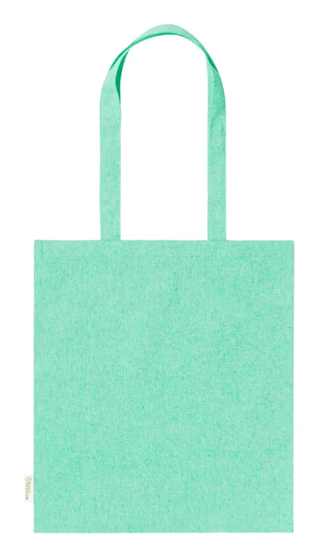 Többször használható, újrahasznosított pamut bevásárlótáska hosszú fülekkel. 100% újrahasznosított pamut, 140 g/m².