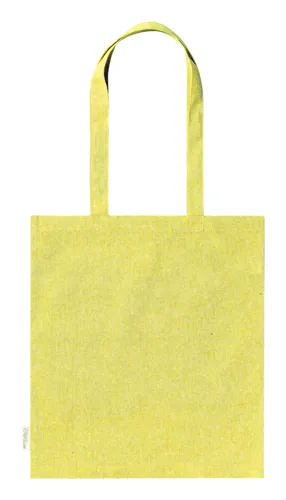 Többször használható, újrahasznosított pamut bevásárlótáska hosszú fülekkel. 100% újrahasznosított pamut, 140 g/m².
