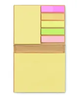 3 elemes öntapadós jegyzetelő szett újrahasznosított kartonborítóval. Nagy és közepes méretű, 25 és 50 lapos sárga öntapadós jegyzettömbök és 5 különböző színű, egyenként 25 lapos lapjelző.
