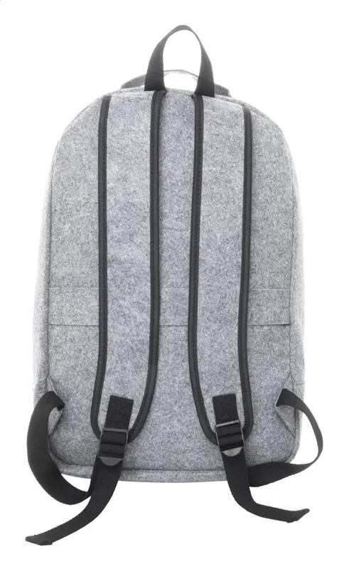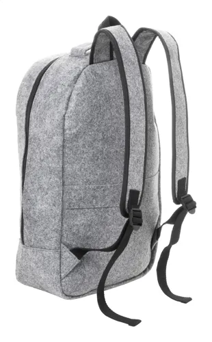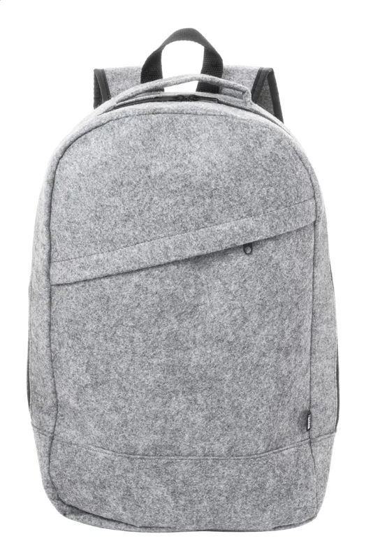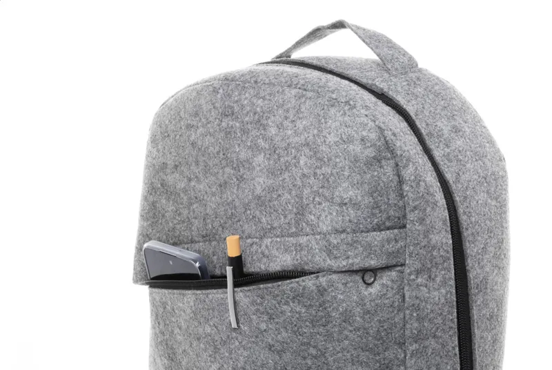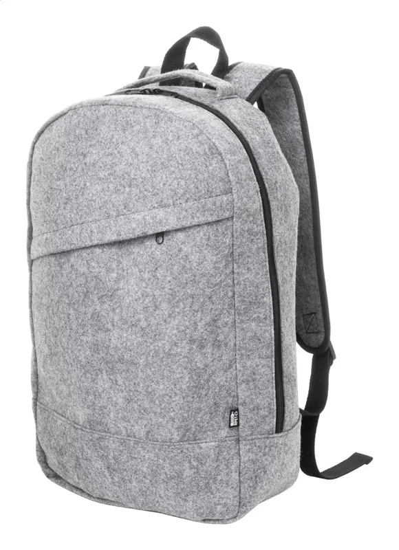 RPET filc hátizsák cipzáras fő rekesszel és elülső zsebbel. Laptop rekesszel (15"), bőröndszíjjal és párnázott vállpántokkal. Megkülönböztető RPET címkével.