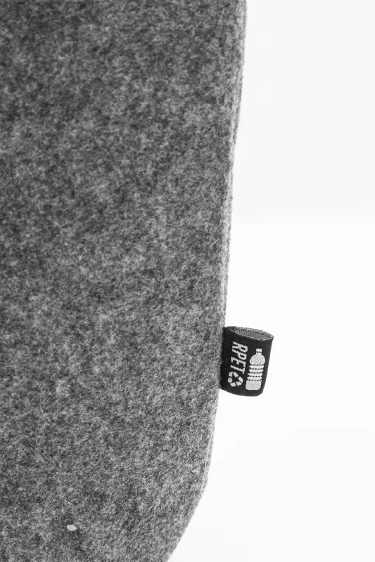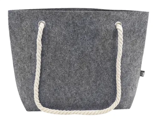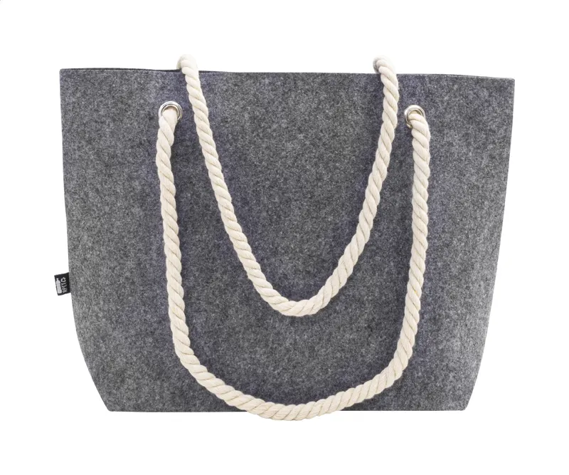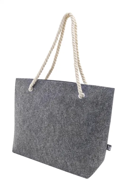 RPET filc strand- vagy bevásárlótáska pamut zsinóros fogantyúkkal és alsó betoldással. Megkülönböztető RPET címkével.