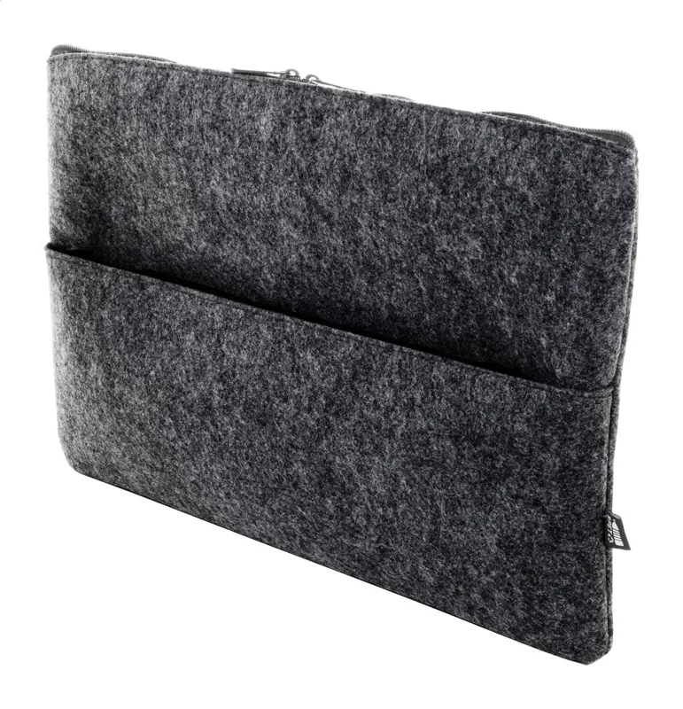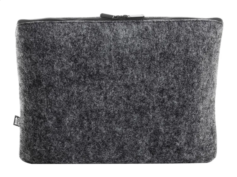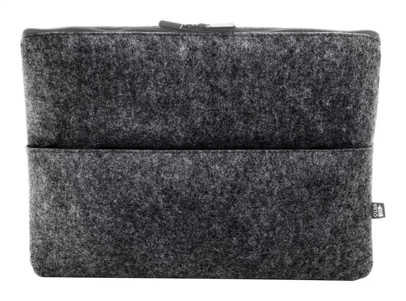 RPET filc laptoptáska cipzáras rekesszel és elülső zsebbel. Legfeljebb 15"-os laptopokhoz használható, megkülönböztető RPET címkével.