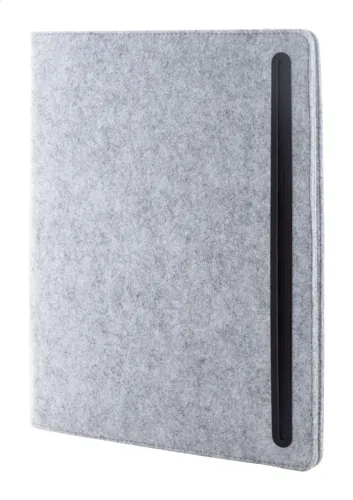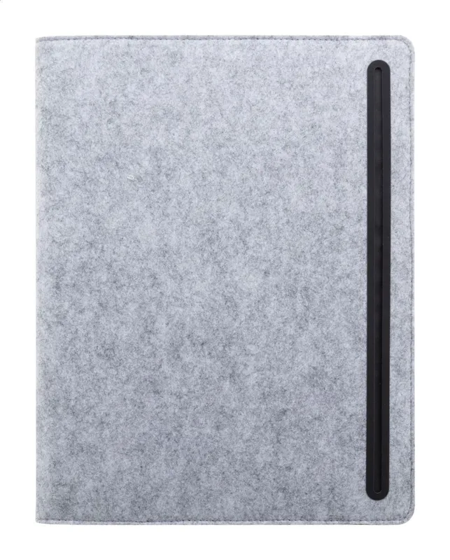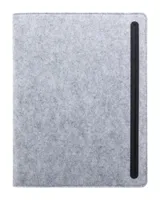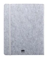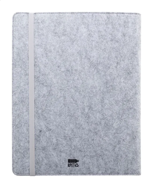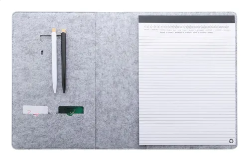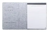A4-es méretű, RPET filc iratmappa elülső és több belső rendezőzsebbel. 20 vonalas jegyzettömbbel újrahasznosított papírból.