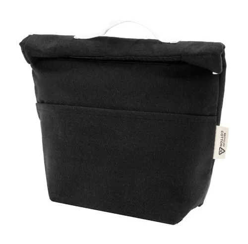 Újrahasznosított vászonból készült, feltekerhető hűtőtáska elülső zsebbel, alumínium béléssel és tépőzárral. 70% újrahasznosított pamut és 30% RPET poliészter. Megkülönböztető újrahasznosított pamut címkével.