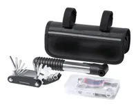 Kerékpár javító készlet praktikus tokban. Tartalmaz: 15 funkciós eszközt, hatszögletű csavarkulcsot,...