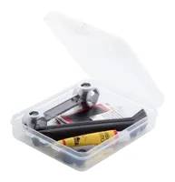 Kerékpár javító készlet PP műanyag dobozban. Egy hatszögletű csavarkulcsot és defektjavító készletet...