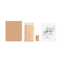 Színezőkészlet 6, különböző színű, fa színesceruzával, 1 fa hegyezővel és 20, újrahasznosított papír...