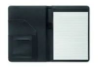 A4-es méretű, PU bőr iratmappa 20 lapos vonalas jegyzetfüzettel, toll- és névjegykártya tartóval.