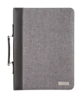 Vászon és PU bőr borítású A4-es iratmappa, 20 lapos vonalas jegyzettömbbel. Borítón jól emblémázható...