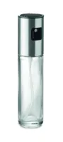 Üvegből készült olaj- vagy ételecet tartó rozsdamentes acél szórófejes adagolóval. Űrtartalom: 100 m...