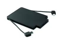 Bankkártya méretű, 2500 mAh powerbank külső akkumulátor ABS-ből, beépített kábelekkel. Tapad a mágn...