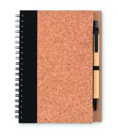 A6 jegyzettömb parafa borítóval. Ikerspirálozott. 70 vonalas lap újrahasznosított papírból. Hozzáill...