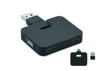 4 portos 2.0 USB hub elosztó ABS-ből. Kimenet: 2 x USB-A és 2 x C-típusú. Bemenet: USB-A és C-típusú...