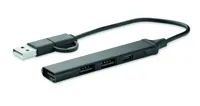 3 portos USB elosztó hub újrahasznosított alumíniumból. Kimenet: 2 x USB-A és 1 x C-típusú. Bemenet:...