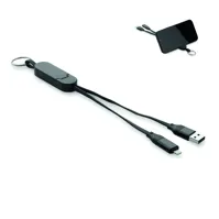 Kulcstartó töltőkábellel. 2 az 1-ben C-típusú, USB-A és mikro USB-B bemenettel és C-típusú kimenette...