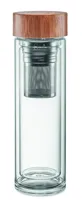 Duplafalú palack boroszilikát üvegből, fém fogantyús bambusz kupakkal, teaszűrővel. Űrtartalom: 400 ...