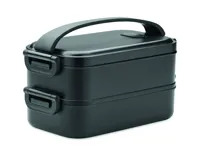 Kétemeletes PP uzsonnás doboz, hozzáillő evőeszközkészlettel és zárókapcsokkal. Teljes űrtartalom: 1...