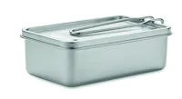 Rozsdamentes acélból készült doboz, erős oldalsó csatolással, szivárgásmentes. Űrtartalma 750 ml.