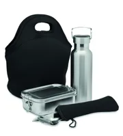 Ebédkészlet neoprén táskában. Tartalmaz duplafalú rozsdamentes acél termoszpalackot (500 ml), uzsonn...