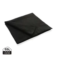 Elegáns RPET poliészter sál, fekete díszdobozban. Megkülönböztető RPET címkével.