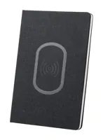 300D poliészter borítású, A5 méretű jegyzetfüzet beépített vezeték nélküli töltővel (5W) és 80 vonal...