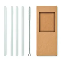 4 darabos, többször felhasználható szívószál készlet boroszilikát üvegből, 1 darab tisztítókefével.