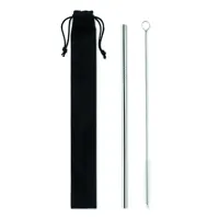 Többször használható rozsdamentes acél szívószál és tisztítókefe szett mikroszálas zsákban.