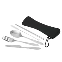 Rozsdamentes acél evőeszköz készlet neoprén tokban. Kést, villát, kanalat, szívószálat és tisztítóke...