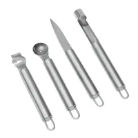 <b>FRUITY késkészlet</b>, tartalmaz egy narancshámozó kést, egy citromreszelőt, gyümölcsvelő-kanalat...