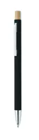 Újrahasznosított alumínium golyóstoll gumírozott felülettel, bambusz gombbal és króm klipsszel. Spec...