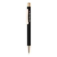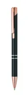 Nyomógombos golyóstoll újrahasznosított alumíniumból, rózsaarany részletekkel. Kéken író betéttel.