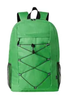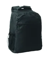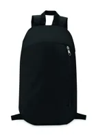 600D poliészter anyagú hátizsák, párnázott hátrésszel, állítható pántokkal és elöl cipzáras zsebbel.