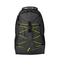 600D melírozott poliészter hátizsák színes kontrasztos elemekkel, az elején sötétben világító zsinór...