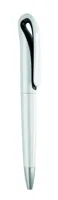 Műanyag golyóstoll fehér testtel, színes markolattal, fényes króm részekkel. Kék tollbetéttel szállí...