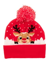 Kötött karácsonyi sapka akrilból, 6 LED fénnyel (3 világítási mód), mandzsettával és bojttal. Gombel...