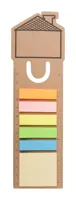 Ház formájú papír könyvjelző vonalzóval, öntapadós jegyzetlapokkal.