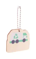 Rétegelt nyírfából készült, környezetvédelmi témájú kulcstartó fém karikával.