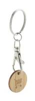 Fém karabineres kulcstartó bambusz bevásárlókocsi érmével. Érme mérete: ø23×2 mm.