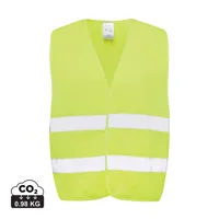 Láthatósági mellény. 100% kötött poliészterből. 2 fényvisszaverő csíkkal. EN ISO 20471.