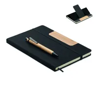 A5 keménytáblás, RPET filc borítós, telefonállvány funkciós jegyzetfüzetből és bambusz tolltestű, ny...