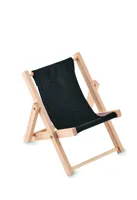 Összecsukható, napozóágy formájú asztali mobiltelefon tartó fából és pamutból.